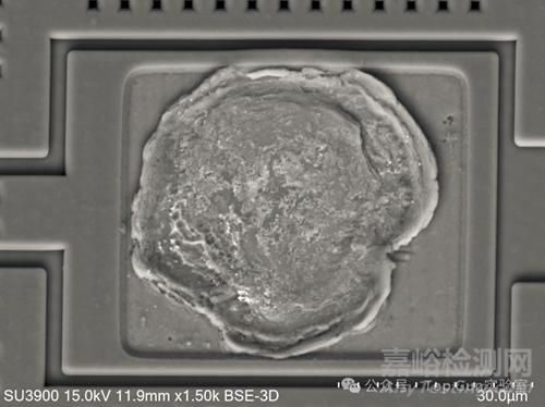 與IMC生長(zhǎng)速度過(guò)快相關(guān)的案例:《芯片鍵合質(zhì)量檢查》,典型失效形貌如下圖所示。