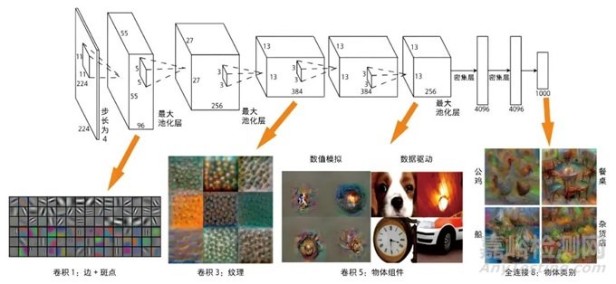 例如,科學(xué)家對(duì)一個(gè)圖像分類模型進(jìn)行拆分,希望研究深度學(xué)習(xí)模型里的那么多層都學(xué)到了什么東西[2]。結(jié)果發(fā)現(xiàn),越接近輸入層,模型學(xué)到的是越基礎(chǔ)的信息,比如邊、角、紋理等;越接近輸出層,模型學(xué)到的是越接近高級(jí)組合的信息,比如公雞的形狀、船的形狀等。不僅僅在圖像領(lǐng)域如此,在自然語(yǔ)言、語(yǔ)音等很多領(lǐng)域也存在這個(gè)特征。