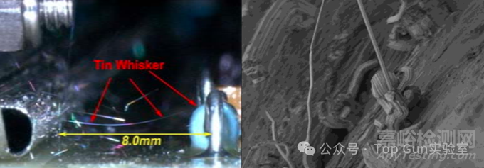在鍍層和焊接表面上形成的錫須是一個(gè)巨大的可靠性風(fēng)險(xiǎn),在幾乎所有的操作環(huán)境中,從低濕度和低溫(太空應(yīng)用)到60°C/93%RH的條件,導(dǎo)電金屬單晶都會(huì)隨著時(shí)間從基底生長(zhǎng)。導(dǎo)電晶體可以生長(zhǎng)到足以接觸相鄰引腳的長(zhǎng)度,或者斷裂并轉(zhuǎn)移到電路板和元件位置,導(dǎo)致現(xiàn)場(chǎng)設(shè)備故障。