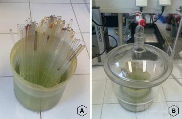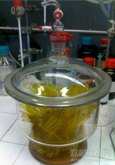二、將清洗溶劑(丙酮,甲醇,乙醇,水,硝酸,氫氧化鈉水溶液。。。。)加入到燒杯中(每個(gè)核磁管大約需要4毫升溶劑),然后將燒杯整個(gè)放到真空干燥器中;