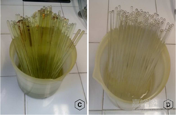 四、換其他清洗溶劑(小編喜歡用混合溶劑,雞尾酒療法效果更佳),清洗完畢,最后用丙酮清洗,瀝干溶劑,干燥箱烘干。具體一次能洗多少根,要看儀器的大小。