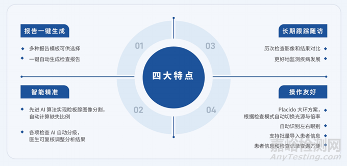 功能全面:一站式完成包含淚河高度、淚膜破裂時(shí)間、瞼板腺、瞼緣、眼紅、脂質(zhì)層、角膜染色等全面檢查。