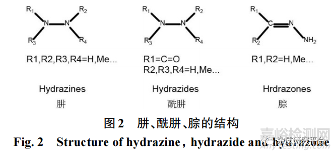 肼、酰肼和腙(結(jié)構(gòu)見圖2)具有基因毒性警示結(jié)構(gòu),是一種已知的GTI,具有潛在的致癌性。