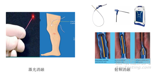 靜脈腔內(nèi)手術(shù)治療是通過(guò)物理和化學(xué)手段閉合靜脈管腔,從而達(dá)到消除返流和緩解癥狀的目的,主要有熱消融和化學(xué)消融兩種手段,根據(jù)設(shè)備及術(shù)式不同,可分類為射頻消融、激光消融、硬化注射及機(jī)械化學(xué)破壞等。