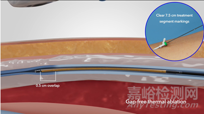 ClosureFast是一款用于治療下周靜脈曲張的射頻消融系統(tǒng),已經(jīng)在歐美、國(guó)內(nèi)上市,6Fr消融導(dǎo)管沒(méi)有在國(guó)內(nèi)上市。ClosureFast采用其分段方法,每個(gè)治療分段重疊 0.5 厘米,旨在消除治療間隙。