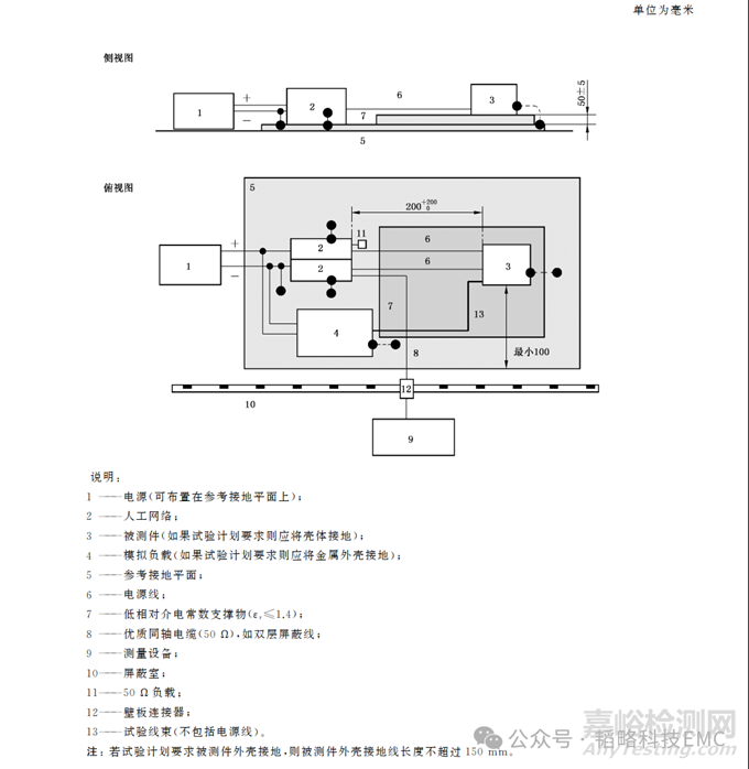 傳導(dǎo)發(fā)射——電源回線遠(yuǎn)端接地的被測件試驗布置示例圖