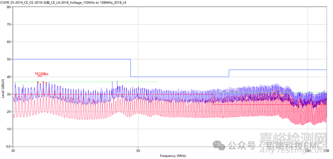 這是一款車載產(chǎn)品,目前測試不通過的項目是電壓法,測試標(biāo)準(zhǔn)是CISPR 25-2016 ,按照標(biāo)準(zhǔn)進(jìn)行擺放測試,我們得到下面的數(shù)據(jù):