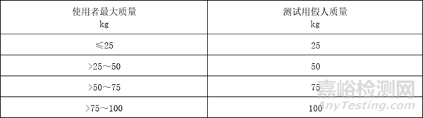 根據(jù)制造商規(guī)定的手動輪椅車最大使用者質(zhì)量,選擇一個質(zhì)量與之相等的測試用假人,如果沒有,則選一個比輪椅車載荷稍大的測試用假人(見表3)。