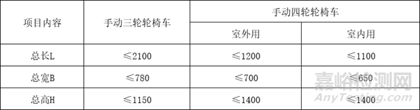 手動輪椅車的外形尺寸應(yīng)符合表1的規(guī)定。