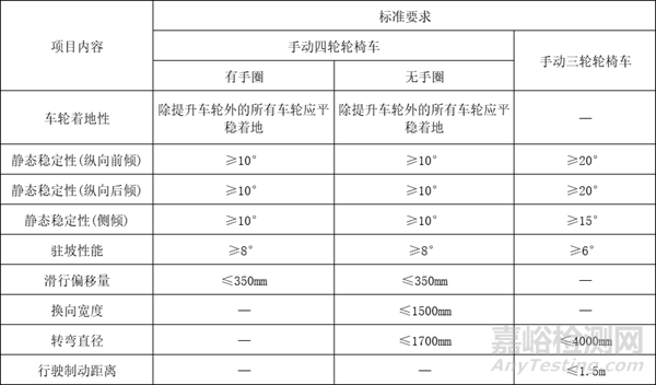 手動輪椅車的性能要求應(yīng)符合表2的規(guī)定。
