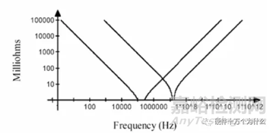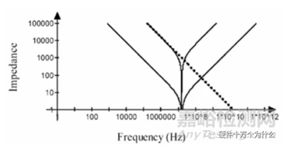 實際的電容存在寄生電感與等效串聯(lián)電阻。由于單個電容的ESR、ESL相近,他們的阻抗特性也是相近的,單個電容與多個特性相同的電容并聯(lián)阻抗特性圖