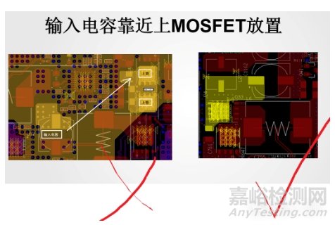 理由:輸入電容的主要作用是為開關管提供瞬態(tài)電流,減少電壓波動。將輸入電容靠近功率開關(MOSFET或IC)和輸入引腳,可以最大程度降低寄生電感引起的電壓尖峰。
