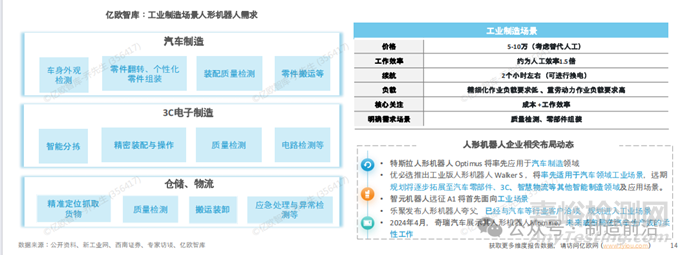 中國大多數(shù)企業(yè)認(rèn)為制造業(yè)能夠率先真正實(shí)現(xiàn)人形機(jī)器人商業(yè)化落地。汽車制造場景有望率先落地,質(zhì)量檢測及零部件組裝為明確需求場景。最終實(shí)現(xiàn)家庭服務(wù)應(yīng)用場景。
