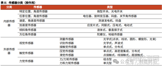人形機(jī)器人中應(yīng)用最多的為力矩傳感器。根據(jù)傳感器的作用,一般將傳感器分為內(nèi)部傳感器和外部傳感器。內(nèi)部傳感器(體內(nèi)傳感器)主要測量機(jī)器人內(nèi)部系統(tǒng)狀態(tài);外部傳感器(檢測外部環(huán)境傳感器)安裝在機(jī)械手或移動機(jī)器人上,主要測量機(jī)器人外界周圍環(huán)境。按照檢測方法分類,可以將傳感器分為光學(xué)、機(jī)械、超聲波、電阻、半導(dǎo)體、電容、氣壓等的傳感器。特斯拉 Optimus機(jī)器人中,包含了 40個力矩傳感器和 3個視覺傳感器,傳感器占整體價值量的比例高達(dá) 19%。