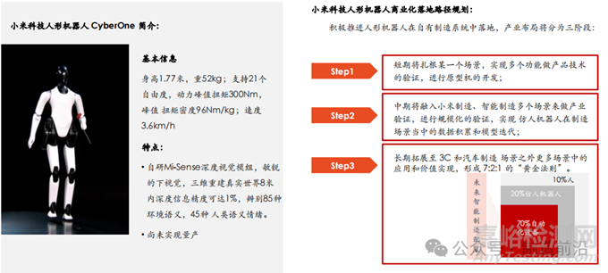 小米推出機(jī)器人“鐵大”,成本較高尚無法量產(chǎn)。2022年8月,小米發(fā)布公司首個全尺寸人形仿生機(jī)器人cyber0ne。cyberOne高177厘米,重52kg,自由度21個。cyber0ne 配備 Mi-Sense視覺空間系統(tǒng)模塊,8米內(nèi)深度信息精度達(dá)1%;可識別85種環(huán)境語義和6類45種人類情感。雷軍表示,鐵大還需要漫長時間去學(xué)習(xí)完善,目前一臺機(jī)器人的成本高達(dá)六七十萬,尚無法量產(chǎn)。