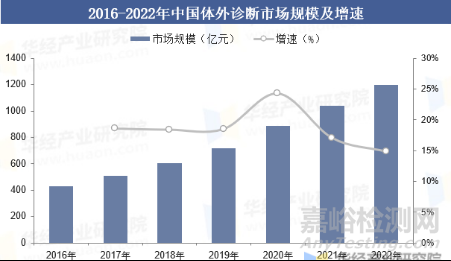 當(dāng)前,IVD市場呈現(xiàn)出多元化和專業(yè)化的發(fā)展趨勢,其中免疫診斷、分子診斷和即時診斷(POCT)占據(jù)了主要市場份額,構(gòu)成了IVD市場的三大支柱[3]。2022年,這三個細分領(lǐng)域合計占據(jù)了近80%的全球IVD市場。在中國,IVD市場從2016年的430億元人民幣快速增長至2022年的1197億元,展現(xiàn)出強勁的增長勢頭[3]。