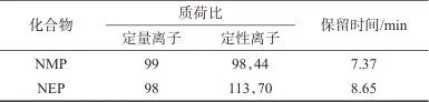 表1 NMP、NEP的定性、定量離子和保留時間