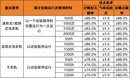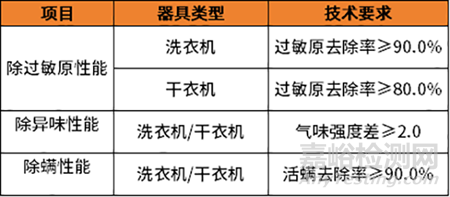 該標(biāo)準(zhǔn)是首個(gè)針對(duì)家用和類似用途洗衣機(jī)、干衣機(jī)除過敏原、除異味和除螨性能檢測(cè)的行業(yè)標(biāo)準(zhǔn)。具體檢測(cè)項(xiàng)目及技術(shù)要求如下: