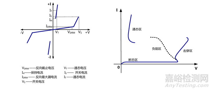 熟悉了TSS的四個區(qū)域,我們先來熟悉一下TSS伏安特性所涉及到的幾個電氣參數(shù)。