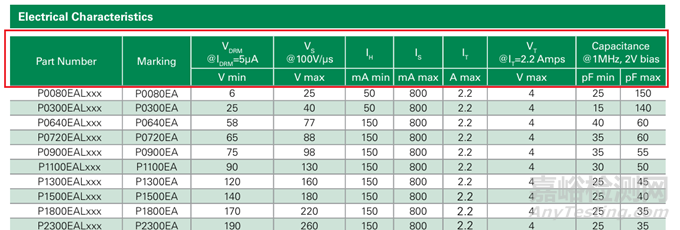 如下圖表為某品牌某系列的TSS電氣參數(shù)列表: