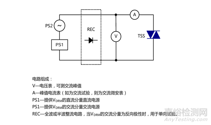 斷態(tài)電流是結(jié)反向電流和所有表面漏電流的綜合,在該區(qū)可施加反向截止電壓(VDRM)測量TSS的漏電流(IDRM)。