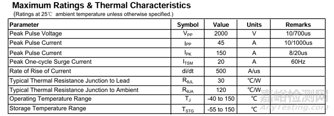 峰值脈沖電壓(Peak Pulse Voltage)VPP:給定波形下TSS可通過的最大峰值脈沖電壓值。