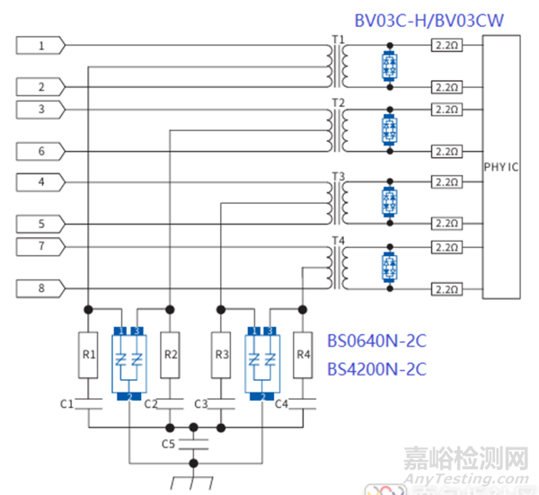 電路四:以太網(wǎng)接口防雷設(shè)計