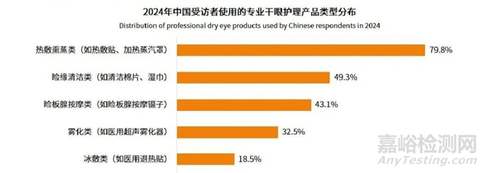 此外,受訪者更經(jīng)常使用熱敷熏蒸類專業(yè)干眼護理產(chǎn)品(79.8%),其次是瞼緣清潔類和險板腺按摩類專業(yè)干眼產(chǎn)品,分別占比 49.3% 和 43.1%。熱敷熏蒸類專業(yè)干眼產(chǎn)品使用方便,體驗舒適,成效顯著,符合廣大患者的眼部護理需求。