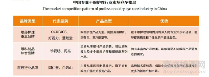 當前專業(yè)干眼護理行業(yè)主要分為眼部護理垂直品牌、眼科制品綜合品牌和醫(yī)藥行業(yè)品牌。垂直品牌如OCUFACE專注于眼部健康護理領(lǐng)域,主要提供眼部護理產(chǎn)品;綜合品牌如珍視明,版下產(chǎn)品包括滴眼液以及擁有眼部護理系列產(chǎn)品;第三種類型如同仁堂,一般從事醫(yī)藥行業(yè),洞察到市場需求,推出了眼部護理相關(guān)系列產(chǎn)品。