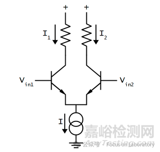 其基本原理:一個(gè)電流源(底部的兩個(gè)圓圈)產(chǎn)生固定電流I,該電流在左側(cè)路徑(I1)和右側(cè)路徑(I2)之間分配。若左側(cè)晶體管的輸入電壓高于右側(cè)晶體管的輸入電壓,大部分電流將流向左側(cè);反之,若右側(cè)晶體管的輸入電壓更高,大部分電流則會(huì)流向右側(cè)。這個(gè)電路能夠放大電壓差,即使兩個(gè)輸入之間僅有微小差異,也會(huì)使大部分電流從一側(cè)切換到另一側(cè)。