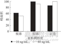 圖3 不同血液粘稠度時的色譜峰面積