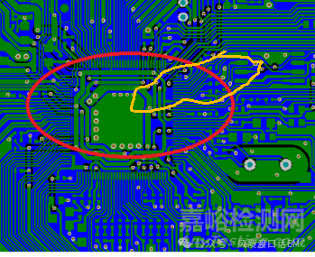 通過頻譜分析儀近場探頭分析定位到干擾頻點(diǎn)來自于SPI Flash時(shí)鐘信號(hào)的高次諧波干擾,深入分析發(fā)現(xiàn)SPI Flash時(shí)鐘信號(hào)回流主芯片的參考地存在嚴(yán)重的分割情況,造成時(shí)鐘信號(hào)回流面積變大,引起輻射發(fā)射測(cè)試超標(biāo)。