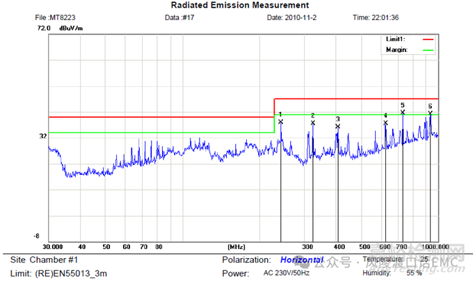 圖1:輻射發(fā)射測(cè)試數(shù)據(jù)