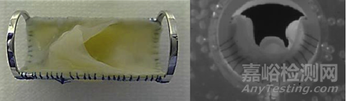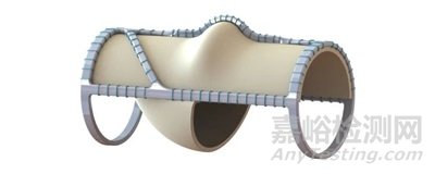 VenoValve 的單向?qū)Я鞑糠钟韶i主動脈瓣制成(具有非抗原性和抗血栓形成特性),縫合在不銹鋼框架內(nèi),其形狀如下圖所示。