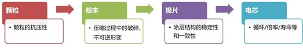 圖1. 鋰電材料顆粒的抗壓性和不同層級(jí)材料應(yīng)用的關(guān)聯(lián)