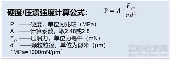 針對(duì)球形的顆粒,部分日韓文獻(xiàn)中[1,2]、上述國(guó)標(biāo)中,球形顆??梢酝ㄟ^(guò)如圖6所示的計(jì)算方法,將顆粒的壓潰力換算成顆粒的抗壓強(qiáng)度。非球形顆粒不適用該方法。