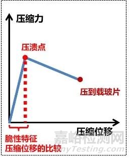 剛度表示顆粒在特定載荷下壓縮的變形量;脆性反映顆粒在受力時(shí)是否容易被壓碎壓潰。這兩個(gè)參數(shù)可以通過(guò)曲線的壓潰點(diǎn)信息作一些判定。例如不同試樣,相同壓潰力情形下,零點(diǎn)到壓潰點(diǎn)之間的曲線越陡峭,表明材料從彈性到破壞的過(guò)渡越快;壓縮位移越短,表明材料較為脆性,因?yàn)樗荒艹惺茌^大的變形即發(fā)生破碎。