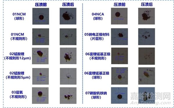 4)顆粒的抗壓性對(duì)緩解電芯循環(huán)過(guò)程中體積效應(yīng)帶來(lái)的正負(fù)極材料結(jié)構(gòu)破壞方面的作用