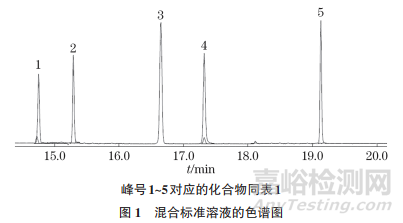 按照儀器工作條件測(cè)定混合標(biāo)準(zhǔn)溶液,所得色譜圖見(jiàn)圖1。