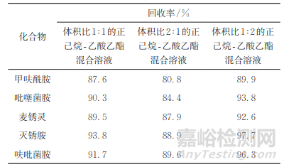 表2 萃取溶劑對(duì)殺菌劑回收率的影響