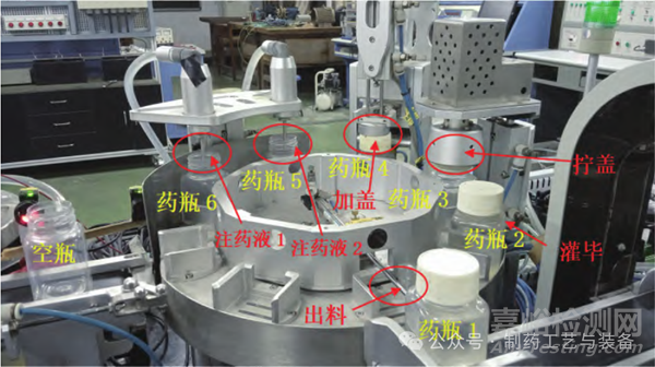 圖1 藥品自動灌裝系統(tǒng)工作流程實物示意圖