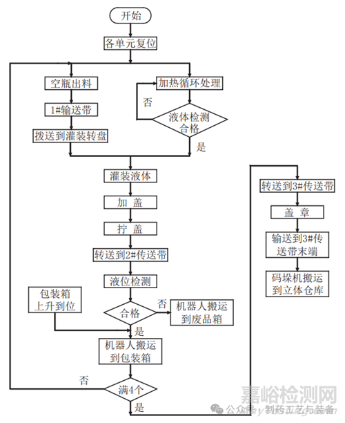 藥品的自動灌裝生產(chǎn)是一種典型的流程型工業(yè)生產(chǎn)形式,其過程是按照固定配方,將液體等原料注入生產(chǎn)線,經(jīng)過各種設(shè)備按照固定流程加工成產(chǎn)品,再經(jīng)過灌裝或瓶裝得到最終產(chǎn)品[1]。整個過程沒有人工干預(yù),是一個將原料變成產(chǎn)品的自動化過程[1]。
