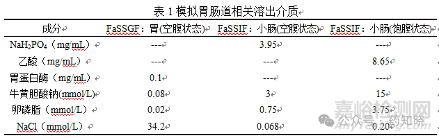 人的胃液或小腸液相匹配的生物相關(guān)性溶出介質(zhì)(人工胃液、人工腸液)可用于預(yù)測(cè)藥物在體內(nèi)的釋放??崭?fàn)顟B(tài)模擬胃液(FaSSGF)改善了弱堿性藥物溶出的預(yù)測(cè)性,但對(duì)中性藥物沒(méi)有預(yù)測(cè)性。模擬空腹和飽腹?fàn)顟B(tài)小腸液的溶出介質(zhì),可用于模擬食物的影響、同種活性物質(zhì)不同產(chǎn)品的吸收差異。