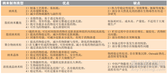 各類納米制劑優(yōu)缺點直觀比較表