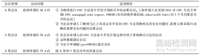 《非處方藥專論使用者付費法案》(OTC Mono?graph Drug User Fee Program,OMUFA)承諾滿足美國FDA和非處方(over?the?counter,OTC)藥物申請人之間的會議申請,《FDA與非處方藥專論產(chǎn)品的申請人之間的正式會議》為美國FDA與OTC專論產(chǎn)品的申請人之間的正式會議提供了行業(yè)指南規(guī)范[7]。