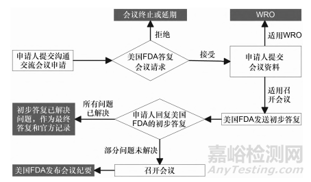 美國FDA藥品審評人員通過與申請人的溝通交流,對其提供藥品的開發(fā)、審評以及上市許可申請相關(guān)的指導(dǎo),形式包括面對面會議、電話會議和僅書面答復(fù)(written response only,WRO)。美國FDA針對創(chuàng)新藥和生物制品、仿制藥、生物類似藥、非處方藥分別制定了溝通交流的行業(yè)指南,規(guī)范溝通交流時間的合理安排,提高溝通交流效率,從而促進高效和有效的藥物開發(fā)。下面針對各類會議的主要內(nèi)容和溝通交流會議的流程分別進行概要闡述。