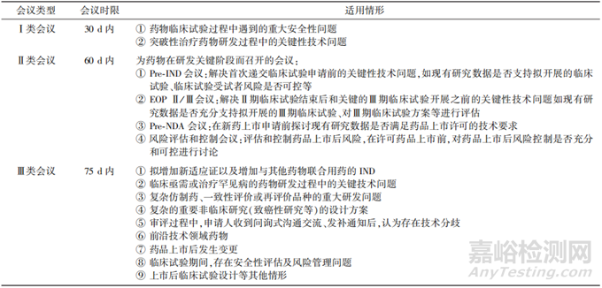 ▲表2-GDUFA 會議類型、時限與適用情形