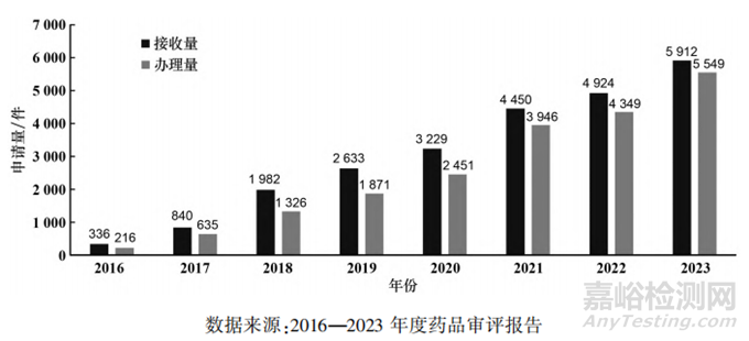 ▲圖4-2016-2023年CDE接收、辦理及召開溝通交流會議申請量