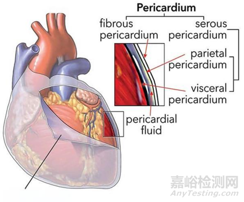 心包膜(pericardium)是人體心臟表面包裹心和出入心大血管根部的纖維漿膜囊,分內(nèi)、外兩層,外層為纖維性心包,內(nèi)層為漿膜性心包。其中,纖維性心包由堅(jiān)韌的結(jié)締組織構(gòu)成,防止心過(guò)度擴(kuò)張,保持血容量的相對(duì)恒定,并起到屏障保護(hù)作用;漿膜性心包薄而光滑,分臟、壁兩層,臟層即心外膜,緊貼心肌層表面及出入心的大血管根部外面。