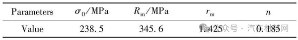 式中: σ 為真應力; K 為強度因子; ε 為真應變。屈服模型采用Hill48 模型。